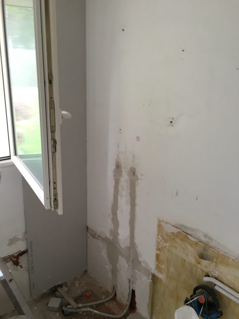 Nos entités An Oriant Plak, An Oriant Sols et Les Salles de Bains d’Inès ont procédé à la réalisation complète de cette salle de bain sur la commune de Lanester en effectuant :